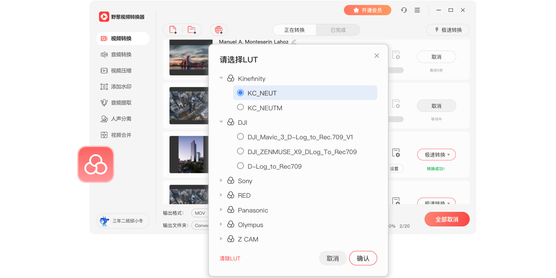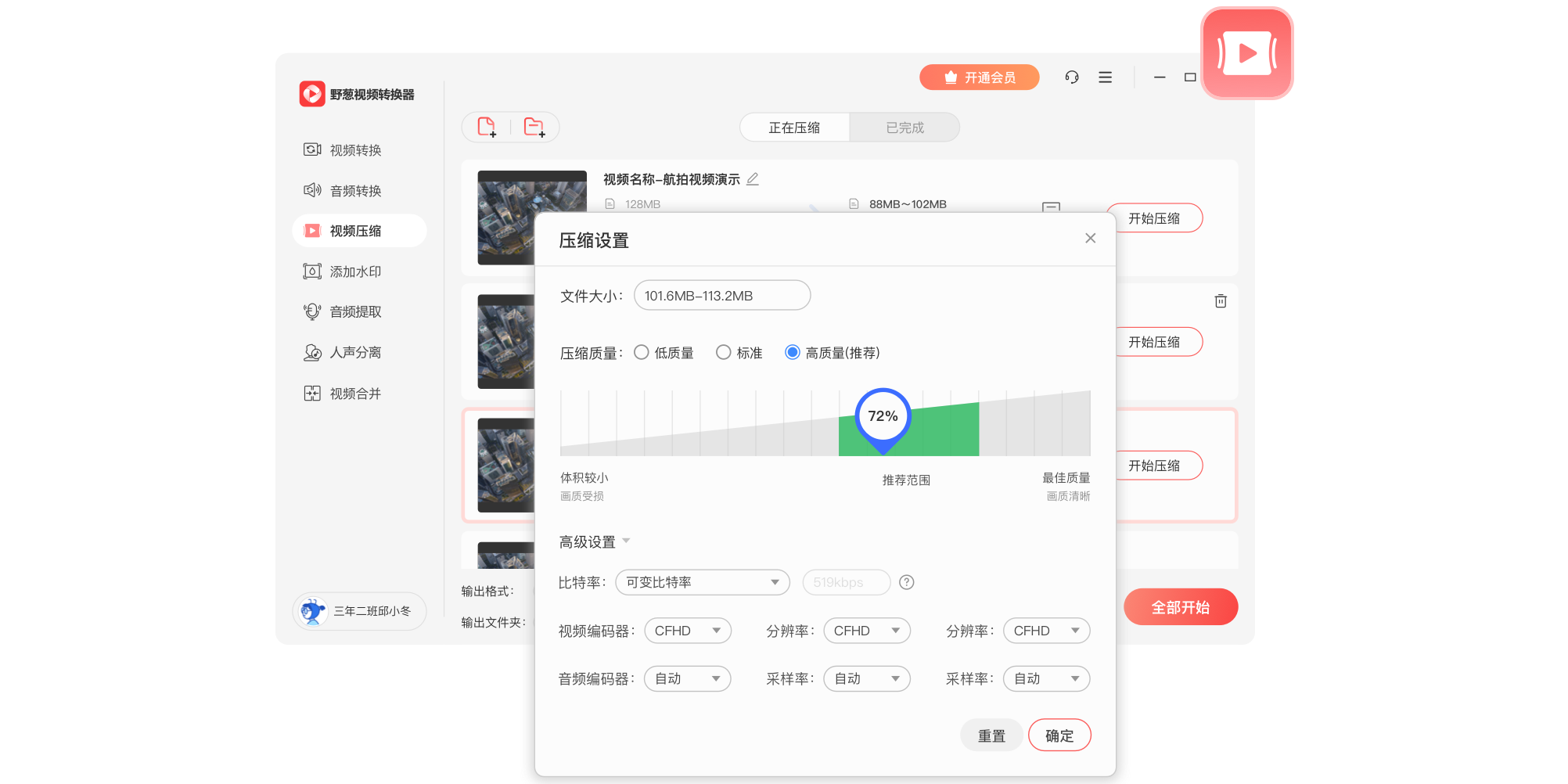 野葱视频转换器,支持1000+音视频格式转换,自由调节分辨率、比特率、帧数、音质效果等内含视频转换、音频转换、视频压缩、人声分离、音频提取、视频合并、视频水印、视频转gif等多种特…